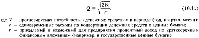 Таким образом, средний запас денежных средств составляет Q/2, а общее количество сделок по конвертации ценных бумаг в денежные средства (k) равно