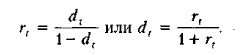 Оба показателя могут выражаться либо в долях единицы, либо в процентах. Различие в этих формулах состоит в том, какая величина берется за базу сравнения: в формуле (6.1) — исходная сумма, в формуле (6.2) — возвращаемая сумма. Как же соотносятся между собой эти показатели? Очевидно, что rt > dt, а степень расхождения зависит от уровня процентных ставок, имеющих место в конкретный момент времени. Так, если rt = 8%, dt = 7,4%, т, е. расхождение сравнительно невелико; если rt = 80%, то dt = 44,4%, т. е. ставки существенно различаются по величине. В прогнозных расчетах, например, при оценке инвестиционных проектов, как правило, имеют дело с процентной ставкой, хотя обычно это не оговаривается. Объяснение этому может быть таким. Во-первых, анализ инвестиционных проектов, основанный на формализованных алгоритмах, может выполняться лишь в относительно стабильной экономике, когда уровни процентных ставок невелики и сравнительно предсказуемы — в том смысле, что их значения не могут измениться в несколько раз или на порядок, как это имело место в России в переходный период от централизованно планируемой экономики к рыночной экономике. Если вероятна значительная вариабельность процентных ставок, должны применяться другие методы анализа и принятия решений, основанные, главным образом, на неформализованных критериях. При разумных значениях ставок расхождения между процентной и дисконтной ставками, как мы видели, относительно невелики, и потому в прогнозных расчетах вполне может быть использована любая из них. Во-вторых, прогнозные расчеты не требуют повышенной точности, поскольку результатами таких расчетов являются ориентиры, а не точные оценки. Поэтому, исходя из логики подобных расчетов, предполагающих их многовариантность, а также использование вероятностных оценок и имитационных моделей, излишняя точность не требуется.