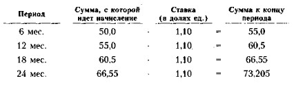Заметим, что для простых процентов такие выводы не имеют места. Одно из характерных свойств наращения по простым процентам заключается в том, что наращенная сумма не изменяется с увеличением частоты начислений простых процентов. Например, наращение простыми процентами ежегодно по ставке 10% „ годовых дает тот же результат, что и ежеквартальное наращение простыми процентами по ставке 2,5% за квартал. При наращении по сложным процентам ежеквартальное начисление доставляет больший результат, чем ежегодное.