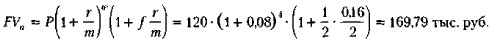 FVn = Р (1 + r)ω (1 + ƒr) = 120 • (1 + 0,1 б)2 • (1 + 0,25 • 0,1б) = 167,93 тыс. руб.