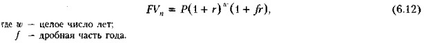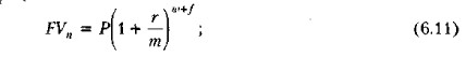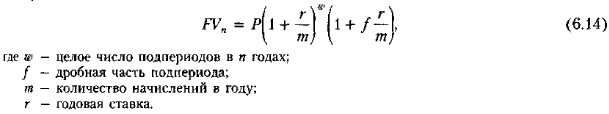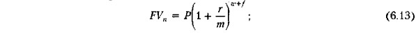 Обращаем внимание читателя на то, что в приведенных алгоритмах показатели ω и ƒ имеют разный смысл. Так в формуле (6,12) ω означает целое число лет в n годах, а ƒ — дробную часть года и поэтому n = ω + ƒ, Однако в формуле (6.14) ω означает целое число подпериодов в n годах, а ƒ — дробную часть подпериода и поэтому