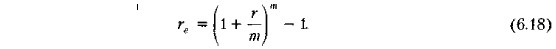 Процентные ставки и методы их начисления 6.3.6. Эффективная годовая процентная ставкаРазличными видами финансовых контрактов могут предусматриваться различные схемы начисления процентов. Как правило, в этих контрактах оговаривается номинальная процентная ставка, обычно годовая. Эта ставка, во-первых, не отражает реальной эффективности сделки и, во-вторых, не может быть использована для сопоставлений. Для того чтобы обеспечить сравнительный анализ эффективности таких контрактов, необходимо выбрать некий показатель, который был бы универсальным для любой схемы начисления. Таким показателем является эффективная годовая процентная ставка rе, обеспечивающая переход от Р к FVn при заданных значениях этих показателей и однократном начислении процентов. Общая постановка задачи может быть сформулирована следующим образом. Задана исходная сумма Р, годовая процентная ставка (номинальная) r, число начислений сложных процентов m. Этому набору исходных величин в рамках одного года соответствует вполне определенное значение наращенной величины FVt. Требуется найти такую годовую ставку rе, которая обеспечила бы точно такое же наращение, как и исходная схема, но при однократном начислении процентов, т. е. при m = 1. Иными словами, схемы {Р, FVt, r, m > 1} и {Р, FV1 , re, m = 1} должны быть равносильными. Из формулы (6.10) следует, что в рамках одного года