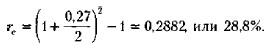 В левой части каждого из двух уравнений — одна и та же величина, а потому, приравнивая правые части уравнений, находим формулу взаимосвязи эффективной и номинальной ставок