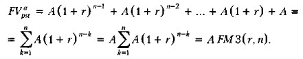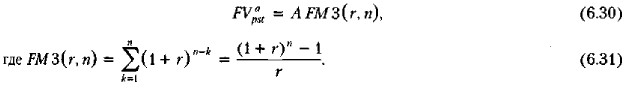 Вывод формулы (6.31) очевиден. Действительно, FM3(r, n) = (1 + r)n-1 + (1 + r)n-2 + ... + (1 + r) + 1. (6.32) Домножив обе части уравнения (6.32) на (1 + r), получим FA/3(r,n) = (1 + r) = (1+ r)n + (1 + r)n-1 + ... +(1 + r)2 + (1 + r). (6.33) Вычтя из уравнения (6.33) уравнение (6.32), получим FM3(r,n)(1+ r) - FM3(r,n) = (1 + r)n - 1.