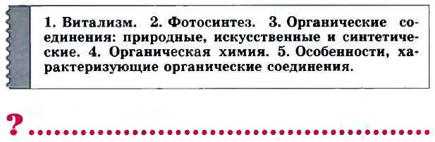 1. Используя знания по курсу биологии, сравните химический состав растительной и животной клеток. Какие органические соединения входят в их состав? Чем отличаются органические соединения растительной и животной клеток? 2. Опишите круговорот углерода в природе. 3. Объясните, почему возникло учение витализм и как оно потерпело крах. 4. Какие типы органических соединений (по происхождению) вы знаете? Приведите примеры и укажите области их применения. 5. Вычислите объем кислорода (н. у.) и массу глюкозы, образующиеся в результате фотосинтеза из 880 т углекислого газа. 6. Вычислите объем воздуха (н. у.), который потребуется для сжигания 480 кг метана СН4, если объемная доля кислорода в воздухе составляет 21%.