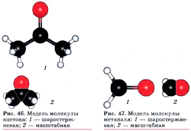 Простейшим представителем кетонов является ацетон, или диметилкетон (рис. 46):