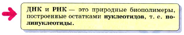Глава 2. Кислород- и азотсодержащие органические соединения и их природные источники § 18. Нуклеиновые кислотыВажнейшими природными полимерами, обеспечивающими передачу наследственных свойств организмов, являются нуклеиновые кислоты. Свое название они получили от слова nucleus — «ядро», т. е. их можно назвать «ядерными кислотами». Различают два типа нуклеиновых кислот: дезоксирибонуклеиновые (ДНК) и рибонуклеиновые (РНК).