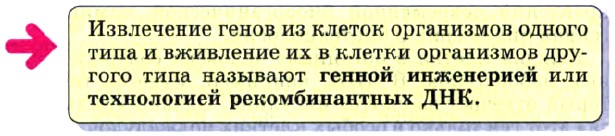 Такие белки, как инсулин, человеческий гормон роста соматотропин и фактор VIII (или коагулирующий фактор — вызывает свертывание крови, применяют при гемофилии), — это продукты генной инженерии. Важнейшее преимущество этих препаратов состоит в том, что они дешевле и чище, чем вещества, полученные традиционным путем. Например, произведенный методом генной инженерии фактор VIII исключает риск заболевания СПИДом, который существует, когда препарат готовят из донорской крови. Применение и тем более потенциальные возможности генной инженерии простираются гораздо дальше получения медицинских препаратов. Иммунная система человека защищает его от вирусной инфекции, распознавая слой белка в оболочке вируса. Если методом генной инженерии произвести только этот белок (без опасного содержимого — вируса) и сделать инъекцию, то препарат будет работать как вакцина. Вакцина против гепатита В получена и действует именно таким образом. Предприятия и организации по защите окружающей среды могут широко использовать модифицированные бактерии и грибы, которые преобразуют потенциально вредные соединения в безвредные. Составив генетический набор из нескольких бактерий, можно получить, например, новые «нефтепожирающие супермикробы». Бактерии выбраны для этой цели потому, что в их обмене веществ используются разные компоненты сырой нефти. Если приготовить комбинацию из соответствующих генов всех бактерий, то бактерия — носитель этой комбинации — сможет разлагать все соединения, содержащиеся в сырой нефти. Для борьбы с сорняками и вредителями растений методами генной инженерии используют два подхода. Во-первых, гены, определяющие устойчивость растений к действию пестицидов и гербицидов, трансплантируют в штаммы сельскохозяйственных культур. При обработке полей соответствующими препаратами вредители и сорняки уничтожаются без ущерба для культурных растений. Во-вторых, некоторые растения производят свои собственные пестициды. Гены, отвечающие за продуцирование токсичных для вредных насекомых белков, вводят в клетки томатов или зерновых. Это уменьшает потребность в искусственных пестицидах. С помощью генной инженерии проводят селекцию сельскохозяйственных культур. Гены, ускоряющие фотосинтез или увеличивающие устойчивость к засухе, могут быть встроены в клетки растений с целью сделать эти растения пригодными для выращивания в менее солнечных или более засушливых местностях. Дальнейшее развитие этой технологии может расширить область ее применения, распространив ее на гены, отвечающие, например, за связывание атмосферного азота, что позволит уменьшить потребность в минеральных удобрениях.