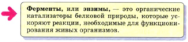 Глава 2. Кислород- и азотсодержащие органические соединения и их природные источники § 19. ФерментыС этими биологически активными веществами вы встречались не раз: и в курсе химии 8 класса, когда знакомились с ферментативным катализом, и в курсе биологии 9 класса, изучая пищеварительные ферменты. Поэтому определение понятия «ферменты» вам уже известно. Итак, повторим.