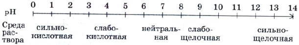 Ферменты наиболее эффективно действуют на биохимическую реакцию при строго определенной среде раствора, при определенных значениях так называемого водородного показателя pH. Величина pH, как показано на схеме, характеризует кислотность и основность растворов и может принимать значения от 1,0 до 14,0.