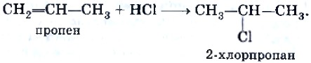 Аналогично гидратации протекает и реакция присоединения галогеноводородов к алкенам, например: