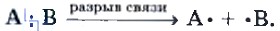 Сущность любой химической реакции заключается в образовании новых молекул из тех же самых атомов, из которых образованы исходные вещества. В ходе любой реакции одни связи разрываются, другие — образуются. Разрыв ковалентной связи можно рассматривать как процесс, обратный ее образованию. Следовательно, при этом возможны два направления разрыва. Гомолитический разрыв приводит к тому, что оба атома, ранее связанные ковалентной связью, получают по одному электрону, превращаясь в частицы с неспаренным электроном — свободные радикалы: