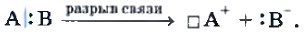 Подобный тип разрыва химической связи и, соответственно, радикальный механизм реакции наблюдается при уже рассмотренном процессе галогенирования метана. Гетеролитический разрыв осуществляется таким образом, что один из атомов получает оба электрона, служившие ранее общей электронной парой. Такой тип разрыва связи приводит к образованию заряженных частиц — ионов:
