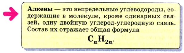 Если сравнить общие формулы алканов и алкенов, нетрудно заметить, что их состав отличается на два атома водорода: