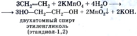 На кратную связь, кроме реакции обесцвечивания бромной воды, существует еще одна качественная реакция — реакция обесцвечивания раствора перманганата калия КМпO4 (рис. 18), уравнение которой