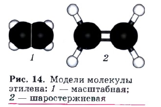 Глава 1. Углеводороды и их природные источники § 4. Алкены. ЭтиленКак вы уже знаете, при дегидрировании этана образуется этилен — родоначальник гомологического ряда алкенов. Потеря двух атомов водорода приводит к образованию между атомами углерода не одинарной, а двойной связи: