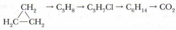 3. Реакция горения. Циклоалканы горят с образованием углекислого газа и воды: