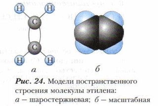 Задание. Опишите изменения, которые происходят в строении молекулы этилена при присоединении к ней молекулы водорода. Атомы углерода из состояния sр2-гибридизации переходят в состояние sp3-гибридизации. При этом изменяется и пространственное строение молекулы. Из плоской молекулы этилена образуется объёмная молекула этана. Б. Галогенирование