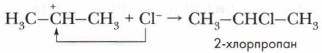 К карбокатиону затем присоединяется хлорид-ион и образуется 2-хлорпропан: