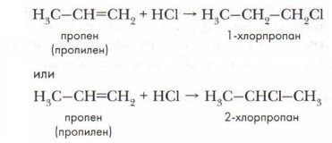 Таким образом, механизм реакции присоединения условно слагается из трёх стадий. Вначале разрывается связь Н—Сl с образованием неорганических ионов, затем образуется положительно заряженный органический ион — карбокатион Н3С— +СН—СН3, и наконец — нейтральный продукт реакции СН3— СНСl—CH3. Такой механизм реакции называется электрофильным присоединением. Аналогично происходит присоединение к алкенам молекул воды.