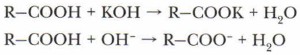 Химические свойства карбоновых кислотХимические свойства карбоновых кислот обусловлены в первую очередь особенностями строения их молекул и функциональных групп. Рассмотрим наиболее характерные свойства карбоновых кислот. 1. Диссоциация карбоновых кислот в воде