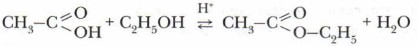 Взаимодействие карбоновых кислот с солями слабых кислотСН3СООН + NaHCO3 → CH3COONa + Н2O + CO2↑ Задание. Запишите ионное уравнение реакции уксусной кислоты с гидрокарбонатом натрия. Как его называют в быту? Что вам известно о практическом применении этой реакции? Взаимодействие карбоновых кислот со спиртамиСпецифическое свойство предельных, карбоновых кислот, осуществляемое за счёт функциональной группы, — взаимодействие со спиртами. Карбоновые кислоты взаимодействуют со спиртами при нагревании и в присутствии концентрированной серной кислоты (как водоотнимающего средства). При нагревании появляется запах этилового эфира уксусной кислоты (этил ацетата):