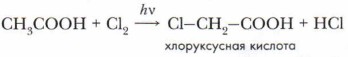 Реакция протекает за счёт гидроксильных групп исходных веществ. Если в реакционной среде концентрация галогена достаточно высока, реакция галогенирования может продолжаться с замещением второго и третьего атомов водорода. Конечным продуктом хлорирования является трихлоруксусная кислота. Экспериментальные данные подтвердили, что степень диссоциации хлоруксусной кислоты в 88 раз, а трихлоруксусной в 6800 раз выше, чем уксусной.