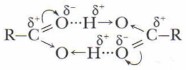 Было обнаружено, что даже в парах уксусной кислоты содержится смесь единичных молекул и димеров, а пары муравьиной кислоты образованы исключительно димерами. Энергия каждой водородной связи в димерах составляет около 7 кДж/моль. Следовательно, относительно высокая температура кипения, а также и растворимость в воде первых гомологов карбоновых кислот объясняются их способностью к образованию водородных связей.