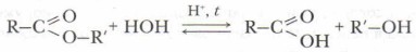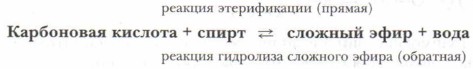 Глава 7. Альдегиды, кетоны, карбоновые кислоты и сложные эфиры Сложные эфиры карбоновых кислотХимические свойства сложных эфировФункциональная группа сложных эфиров характеризуется наличием в ней карбонильной группы которая и определяет химические свойства, сходные со свойствами альдегидов и карбоновых кислот. Гидролиз (омыление) является наиболее характерной реакцией сложных эфиров. При нагревании эфира в присутствии неорганической кислоты и воды происходит его расщепление но месту связи С—О на кислоту и спирт: