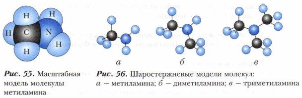 Молекула амина имеет пирамидальную форму (рис. 55).