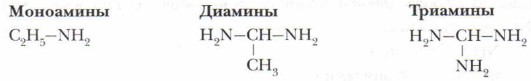 2. По числу аминогрупп в молекуле амины делят на моноамины, диамины и триамииы: