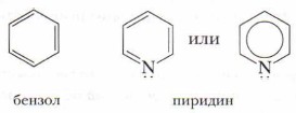 Атомы кислорода, азота, серы, фосфора и других элементов, входящих помимо атомов углерода в циклическую систем) (кольцо) гетероциклического соединения, называются гетероатомами (от греч. heteros — «другой», «иной»). По своему строению гетероциклические соединения весьма разнообразны. Структурные формулы молекул гетероциклических соединений обычно записывают в сокращённом виде, отражая лишь их циклическую систему и важнейшие связи в ней, а также функциональные группы. Наибольший интерес для изучения представляют азотсодержащие гетероциклические соединения. Они довольно распространены, хорошо изучены, имеют важное биологическое значение, в том числе и в жизни человека. Большинство из них — ароматические гетероциклы. Задание. Дайте определение ароматических углеводородов, приведите схему образования π-связей и опишите строение бензольного кольца. Ароматическим гетероциклическим соединениям присущи свойства, характерные для бензола и других ароматических соединений, с которыми вы уже познакомились: высокая стабильность, пассивность в реакциях присоединения, склонность к реакциям замещения. Рассмотрим наиболее известных представителей ароматических азотсодержащих гетероциклов: пиридин, пиррол, никотиновая кислота и др. Пиридин. Структурная формула пиридина сравнима с формулой бензола. Это шестичленный ненасыщенный гетероцикл. В молекуле пиридина, как и в молекуле бензола, образуется устойчивый секстет электронов, что обусловливает сходство его свойств со свойствами бензола.