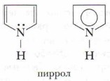 Пиридин и его производные широко применяются в синтезе лекарственных препаратов, красителей, пестицидов и в других целях. Пиррол. Пиррол — бесцветная жидкость, малорастворима в воде, на воздухе быстро окисляется (буреет). Строение молекулы определяет химические свойства пиррола. Пиррол имеет ароматические свойства: как и бензол, он вступает в реакцию восстановления водородом и в реакцию нитрования, но в отличие от бензола он легко нитруется. Молекула пиррола представляет собой пятичленный цикл, содержащий один атом азота.