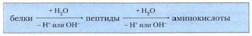 Многообразие белков определяет многообразие их свойств. Поэтому мы остановимся на их общей характеристике. Задание. Охарактеризуйте растворимость белков разных групп. Физические свойства и идентификация белковБелки не имеют точно определённой температуры плавления. Поэтому идентифицировать их по точке плавления нельзя. Для определения чистоты белка или его относительной молекулярной массы используется ультрацентрифугирование. Образцы белковых растворов помещают в специальный аппарат — ультрацентрифугу — и вращают с высокой скоростью. Скорость оседания белков и образования осадков зависит от их Мr, формы и плотности. Чистые и неочищенные белки имеют различные скорости осаждения. Химические свойства белков1. Гидролиз белков — реакция, обратная синтезу белков, осуществляется при действии ферментов или при длительном кипячении белков в присутствии сильных кислот или щелочей. В результате полного гидролиза белков получается смесь из аминокислот. Гидролиз белков имеет огромное значение в исследовании состава белков. Гидролиз белков протекает поэтапно по схеме.