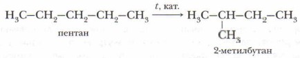 При каталитическом крекинге наряду с расщеплением тяжёлых углеводородов происходит изомеризация углеводородов: