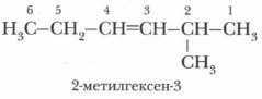 Если по расположению кратных связей нельзя определить начало нумерации атомов углерода в цепи, то нумерацию определяют по положению заместителя: