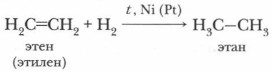 Вы уже знакомы со свойствами этилена — первого представителя гомологического ряда алкенов. Теперь у вас есть возможность расширить и углубить свои знания об этом классе углеводородов. Физические свойства алкеновАлкены по физическим свойствам близки к алканам. Первые три члена гомологического ряда алкенов — газы: С2Н4, С3Н6, С4Н8. Углеводороды с числом атомов углерода от С5 до С18 — жидкости, остальные — твердые вещества. Как и алканы, они практически нерастворимы в воде. Хорошо растворяются в органических растворителях, таких как бензин, бензол, хлороформ и др. Они легче воды, с увеличением относительной молекулярной массы увеличиваются их температуры кипения и плавления. Химические свойства алкеновЭтиленовые углеводороды обладают большей химической активностью, чем предельные углеводороды. Проблема. От чего зависит химическая активность алкенов? Если мы рассмотрим пространственное строение алкенов, то увидим, что атомы углерода при двойной связи находятся в sр2-гибридизации и между ними образуется двойная связь, состоящая из π-связи и σ-связи (см. § 5). Пространственное расположение атомов в молекуле этилена показано с помощью моделей (рис. 27). Здесь π-связь менее прочная, чем σ-связь. При химической реакции π-связь у алкенов легко разрывается и к атомам углерода присоединяются другие атомы или группы атомов. Таким образом, для алкенов характерны реакции присоединения. Расширим свои знания о свойствах этиленовых углеводородов. 1. Реакции присоединенияа) Гидрирование (гидрогенизация) В присутствии катализатора (Ni, Pt) и при нагревании этиленовые углеводороды взаимодействуют с водородом с образованием предельных углеводородов (алканов):