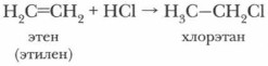 При пропускании этилена и его гомологов через бромную воду происходит разрыв π-связи, атомы брома присоединяются к атомам углерода, окраска раствора исчезает. Эта реакция характерна для алкенов, она используется для распознавания этиленовых углеводородов. в) Гидрогалогенирование