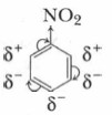 Результаты этих реакций различны. При взаимодействии толуола с хлором образуются о- и n-хлорзамещенные соединения, а при взаимодействии нитробензола с хлором — м-хлорзамещенные соединения. Проблема. Почему в этих реакциях образуются разные продукты? Причина кроется в перераспределении в бензольном кольце электронной плотности. В зависимости от природы радикала (заместителя) электронная плотность в бензольном кольце увеличивается или уменьшается. Имеющийся в бензольном кольце заместитель не только влияет на реакционную способность, но и проявляет ориентирующее действие по отношению к вновь вступающему в реакцию электрофилу. Все заместители по своему ориентирующему действию делятся на две группы. Ориентанты первого рода — заместители, повышающие электронную плотность в л-электронной системе бензольного кольца: алкильные группы, галогены, —ОН, —NH2. Это заместители, обладающие положительным мезомерным эффектом (их индуктивный эффект может быть отрицательным) —ОН или — Вr, а также заместители с положительным индуктивным эффектом (алкильные группы). Эти заместители направляют второй заместитель в о- и n-положения. Мы уже видели, как распределяется электронная плотность в бензольном кольце в толуоле вследствие влияния метильной группы. Это характерно для всех заместителей первого рода. Ориентанты второго рода — заместители, снижающие электронную плотность в π-электронной системе бензольного кольца: —NO2, —SO3H, —СООН, — CN, —СНО. Это заместители, обладающие отрицательным мезомерным эффектом, или отрицательным индуктивным эффектом, которые притягивают электронную плотность бензольного кольца. Эти заместители ориентируют второй заместитель в м-положение бензольного кольца. Они обедняют электронной плотностью о- и n-положения цикла в большей степени, чем м-положение. В этом случае электронная плотность смещается в обратном порядке, в отличие от толуола, — в сторону заместителя. При этом электронная плотность увеличивается в бензольном кольце в м-положении.