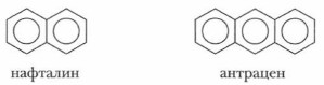 В случае изомерии положения заместителя, чтобы назвать эти вещества, надо пронумеровать атомы углерода. Часто положение двух заместителей обозначают не цифрами, а буквами. Орто (о-) обозначает «рядом»; мета (м-) — «через»; пара (n-) — «напротив». Тогда 1,2-диметилбензол называют о-диметилбензолом, или о-ксилолом; 1,3-д и метил бензол — м-диметилбензолом, или м-ксилолом; 1,4-диметилбензол — n-диметилбензолом, или n-ксилолом. Вторая группа аренов — многоядерные (конденсированные) арены: Нафталин — бесцветное летучее кристаллическое вещество, температура плавления 80 °С, не растворяется в воде, но хорошо растворяется в органических растворителях. Ядовит. Раньше его использовали в быту. Он способен отпугивать моль. В 1988 г. в нашей стране его запретили использовать в бытовых целях. Антрацен — твердое кристаллическое вещество, температура плавления 213 °С. По химическим свойствам нафталин и антрацен напоминают бензол. Нафталин и антрацен используются в производстве красителей. Эти вещества содержатся вместе с бензолом в каменноугольной смоле, получающейся при коксовании каменного угля.