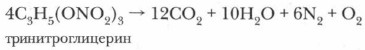 Рассмотрите структурную формулу тринитроглицерина. Обратите внимание на то, что в молекуле этого вещества функциональная группа —NO2 связана с углеродом углеводородного радикала не непосредственно, как в нитросоединениях, а через атом кислорода. Нитроглицерин — тяжелая маслянистая жидкость со сладковатым вкусом, легко взрывается даже от небольшого сотрясения или нагревания (это его свойство используется для изготовления взрывчатых веществ). При взрыве самопроизвольно происходит реакция: