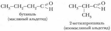 Альдегидам присуща изомерия. Она обусловлена строением углеводородных радикалов, различным положением заместителей в углеродной цепи и относительно друг друга.