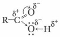 Глава 9. Карбоновые кислоты и сложные эфиры Одноосновные насыщенные карбоновые кислотыВ карбонильной и гидроксильной группах, образующих карбоксильную группу, все связи полярны. Объясним подвижность водородного атома в карбоксильной группе. В карбонильной группе электронная плотность смещена от атома углерода к атому кислорода, поэтому на карбонильном углероде возникает частичный положительный заряд. Атом углерода, компенсируя этот положительный заряд, притягивает к себе неподеленную пару электронов атома кислорода гидроксильной группы. В свою очередь, атом кислорода оттягивает на себя электронную плотность связи О—Н. В результате атом водорода приобретает повышенную подвижность, что существенно упрощает его отрыв в виде протона.