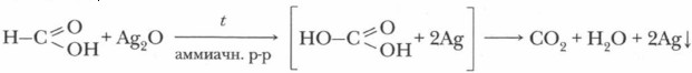 Особенности химических свойств обусловлены ее составом и строением, которые определяют возможность рассмотрения этого соединения и как кислоты, и как альдегида. Подобно альдегидам, муравьиная кислота является сильным восстановителем. Например, она восстанавливает серебро из аммиачного раствора оксида серебра (I):