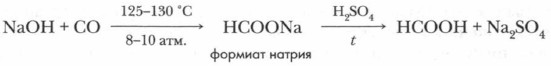 Карбоксильная группа определяет все свойства муравьиной кислоты, типичные для представителей ее гомологического ряда. В промышленности муравьиную кислоту получают из формиата натрия по схеме: