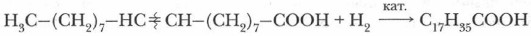 Реакция гидрирования (присоединение водорода) протекает в присутствии катализатора — мелко раздробленного никеля или платиновой черни.