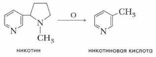 К пиридиновым алкалоидам относится и никотин. Никотин — весьма токсичный алкалоид, включающий связанные ядра пиридина и пирролидина. Он воздействует на вегетативную нервную систему; сужает кровеносные сосуды. Один из продуктов окисления никотина в жестких условиях — никотиновая кислота (витамин РР):