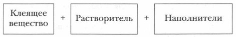 В зависимости от природы пленкообразующего вещества лаки делятся на масляные, нитролаки, полиэфирные, битумные, фенолформальдегидные и др. При выборе лака необходимо учитывать разновидность материала, составляющего поверхность изделия, которую предстоит обработать (металл, древесина, кожа, пластмасса и т. д.). КлейКлей используется для соединения различных материалов. Он может быть в жидком и твердом виде. В состав клея входят: