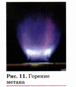 3. Реакции, сопровождающиеся разрушением углеродной цепи. Все предельные углеводороды горят с образованием углекислого газа и воды. Газообразные углеводороды, смешанные с воздухом в определённых соотношениях, могут взрываться. Горение предельных углеводородов — это свободнорадикальная экзотермическая реакция, которая имеет очень большое значение рис. 11. Горение при использовании алканов в качестве топлива (рис. 11):