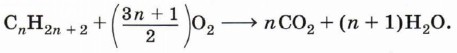 В общем виде уравнение горения алканов можно записать следующим образом: